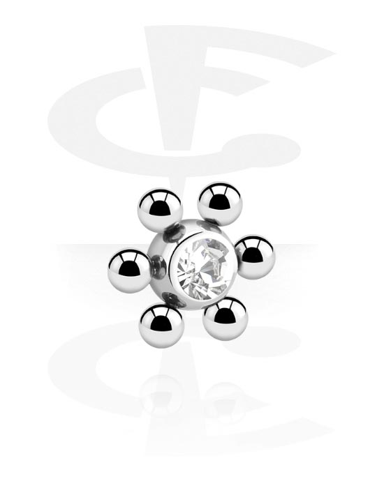 Nakrętka do prętów 1,6 mm z gwintem (stal chirurgiczna, srebro, błyszczące wykończenie) z z kryształem
