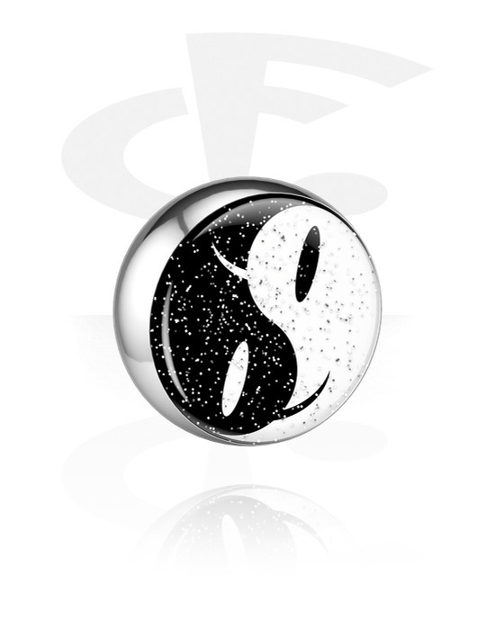 Kulka do pręta 1,6 mm z gwintem (stal chirurgiczna, srebro, błyszczące wykończenie) z wzorem ying-yang