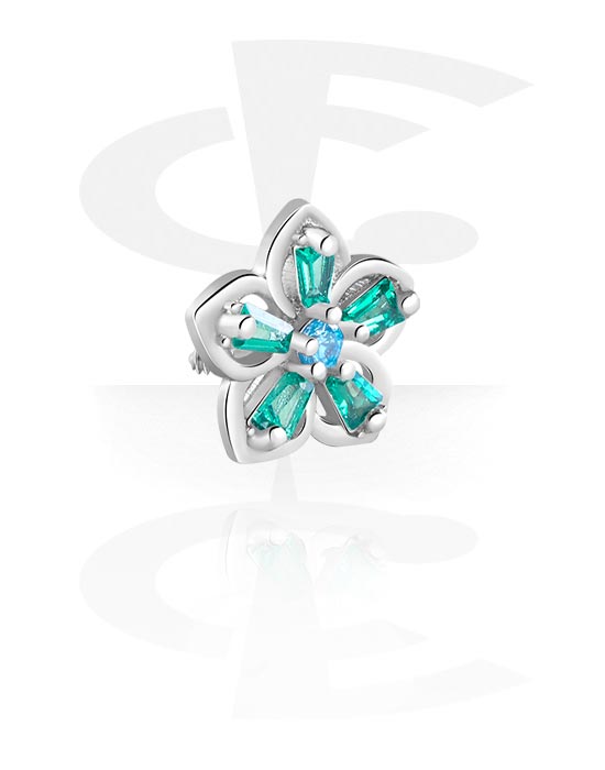 Nakrętka do prętów z gwintem wewnętrznym (stal chirurgiczna, srebro, błyszczące wykończenie) z kwiatem i kryształami