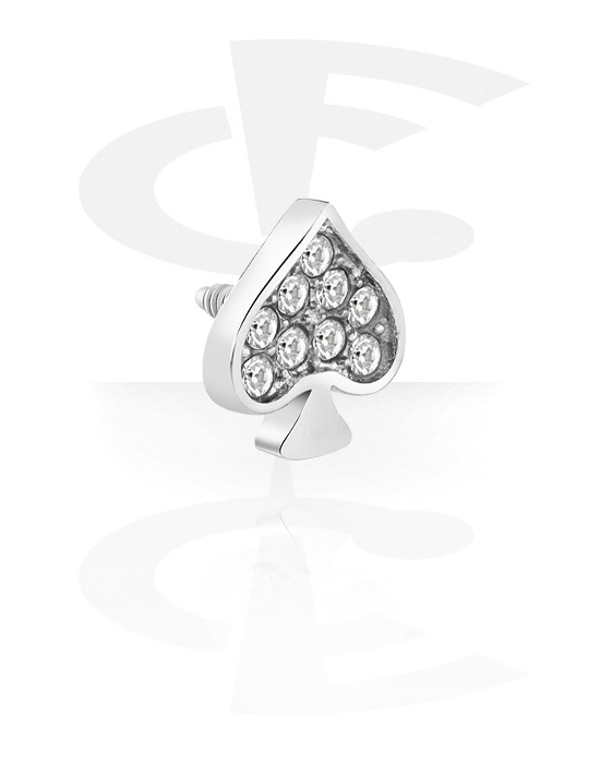 Nakrętka do prętów z gwintem wewnętrznym (stal chirurgiczna, srebro, błyszczące wykończenie) z wzorem łopaty i kryształami