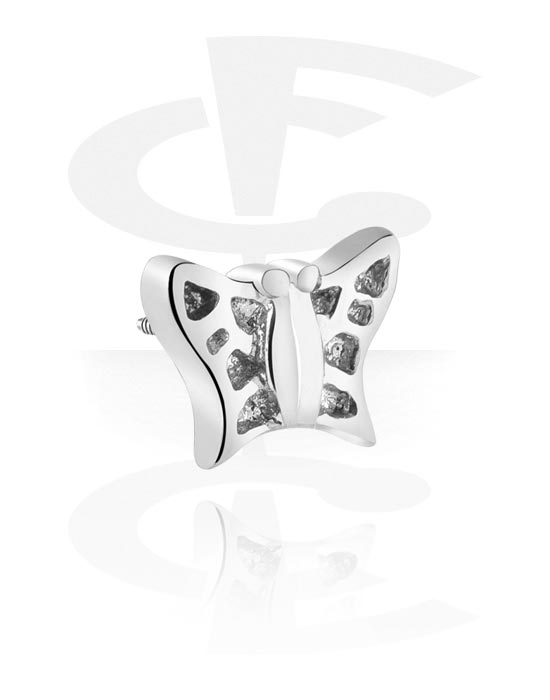 Nakrętka do prętów 1,2 mm z gwintem wewnętrznym (stal chirurgiczna, srebro, błyszczące wykończenie) z wzorem motyla