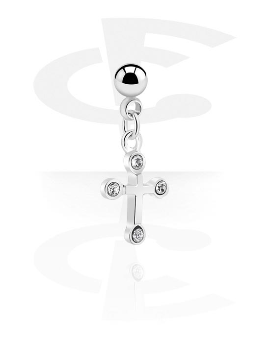 Kulka do pręta 1,2 mm z gwintem (stal chirurgiczna, srebro, błyszczące wykończenie) z wzorem krzyża i kryształami