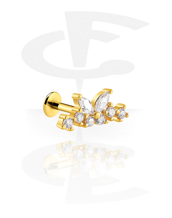 Pręt labretu (ze stali chirurgicznej, złoty, błyszczące wykończenie) z wzorem motyla i kryształami