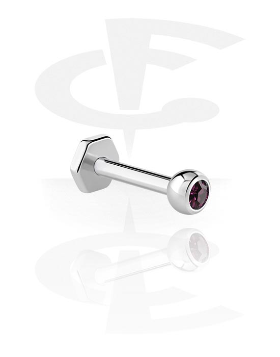 Flatback Internally Threaded Labret (surgical steel, silver, shiny finish) z kulką z klejnotami