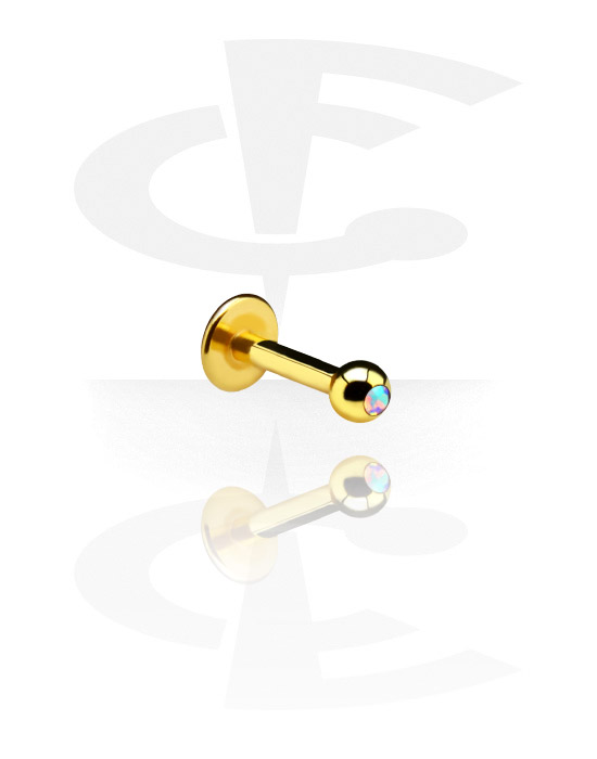 Gold meets crystal: This 1.2 mm labret made of surgical steel comes with a delicate Jewelled ball available in different colours. Find your favourite, pop one in your cart and we'll send it your way.