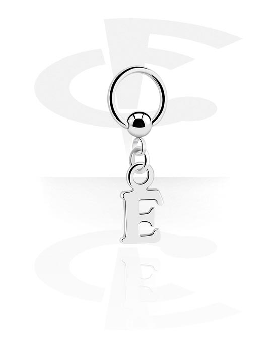 Kółko BCR (stal chirurgiczna, srebro, błyszczące wykończenie) z charmsem z literą „E”