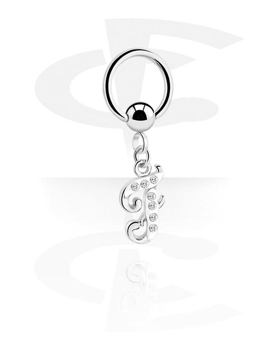Kółko BCR (stal chirurgiczna, srebro, błyszczące wykończenie) z charmsem z literą „F” i kryształami