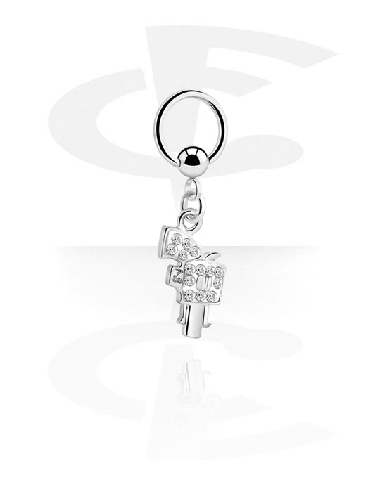 Kółko BCR (stal chirurgiczna, srebro, błyszczące wykończenie) z charmsem pistoletem i kryształami