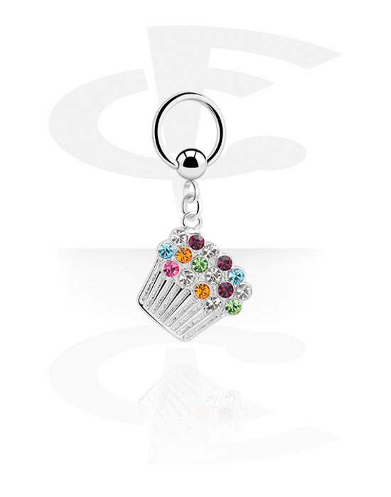 Kółko BCR (stal chirurgiczna, srebro, błyszczące wykończenie) z charmsem babeczką i kryształami