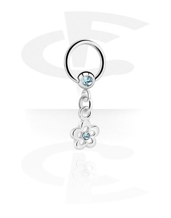 Kółko BCR (stal chirurgiczna, srebro, błyszczące wykończenie) z charmsem kwiatem i kryształami