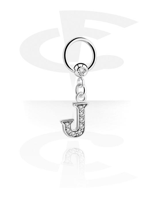Kółko BCR (stal chirurgiczna, srebro, błyszczące wykończenie) z charmsem z literą „J” i kryształami