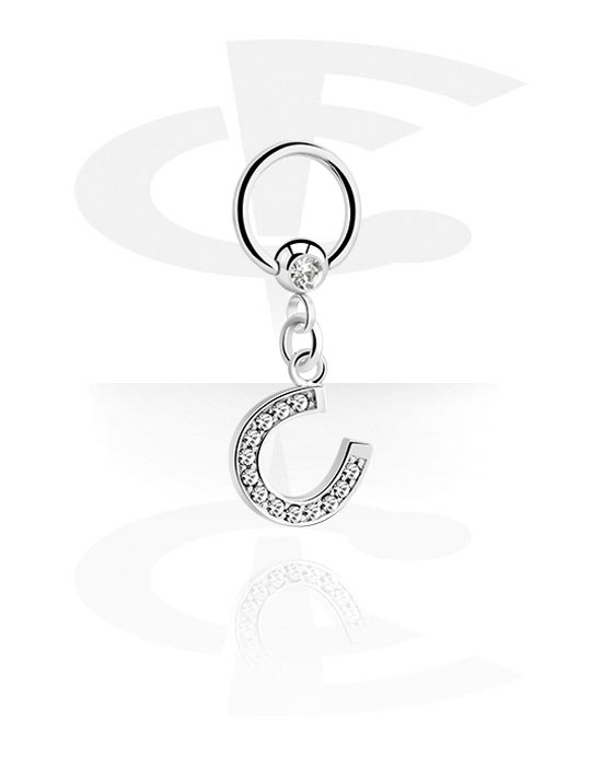 Kółko BCR (stal chirurgiczna, srebro, błyszczące wykończenie) z charmsem podkową i kryształami