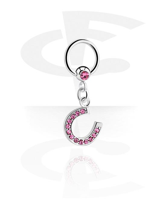 Kółko BCR (stal chirurgiczna, srebro, błyszczące wykończenie) z charmsem podkową i kryształami