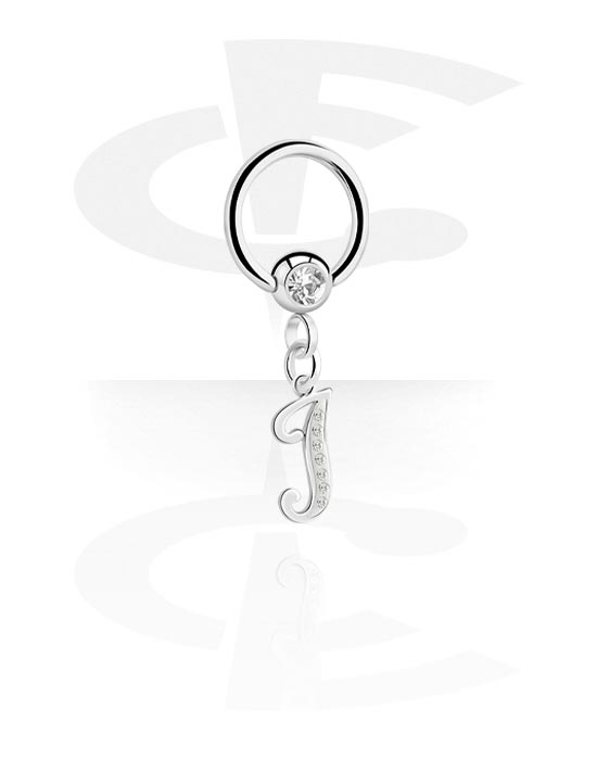 Kółko BCR (stal chirurgiczna, srebro, błyszczące wykończenie) z charmsem z literą „J” i kryształami