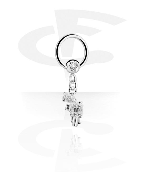 Kółko BCR (stal chirurgiczna, srebro, błyszczące wykończenie) z charmsem pistoletem i kryształami