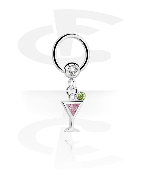 Kółko BCR (stal chirurgiczna, srebro, błyszczące wykończenie) z z kryształem i charmsem koktajlem