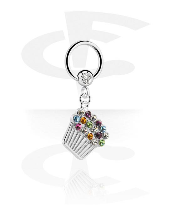 Kółko BCR (stal chirurgiczna, srebro, błyszczące wykończenie) z z kryształem i charmsem babeczką