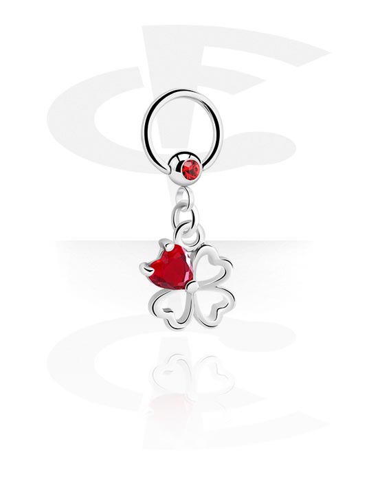 Kółko BCR (stal chirurgiczna, srebro, błyszczące wykończenie) z z kryształem i charmsem koniczynką