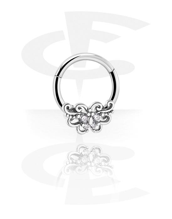Clicker (stal chirurgiczna, srebro, błyszczące wykończenie) z wzorem vintage i kryształami