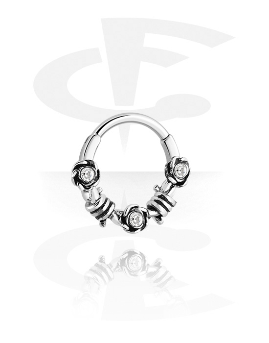 Clicker (stal chirurgiczna, srebro, błyszczące wykończenie) z wzorem róży i kryształami