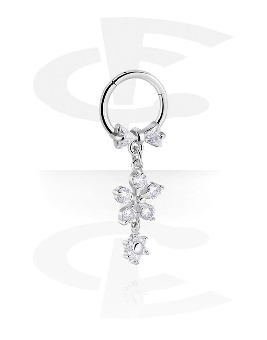 Clicker (stal chirurgiczna, srebro, błyszczące wykończenie) z kokardą i kryształami