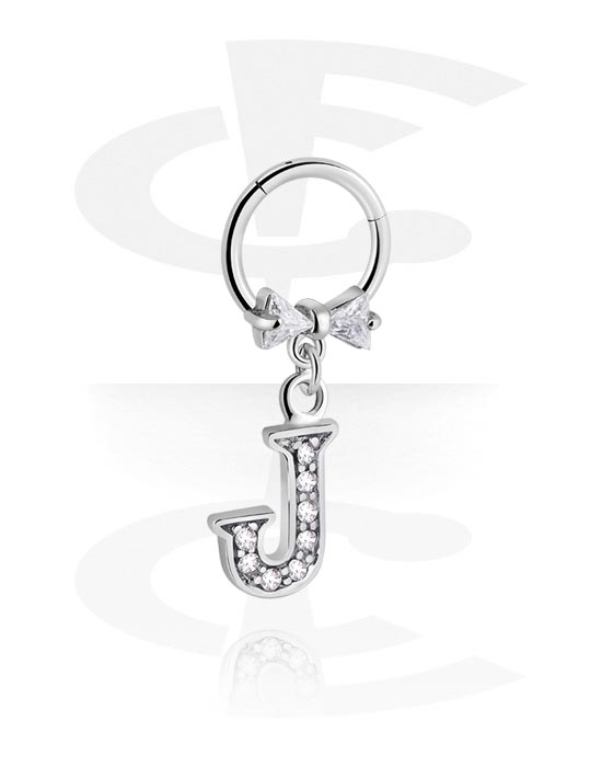 Clicker (stal chirurgiczna, srebro, błyszczące wykończenie) z kokardą i charmsem z literą „J”