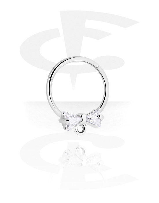Clicker (stal chirurgiczna, srebro, błyszczące wykończenie) z kokardą i kryształami