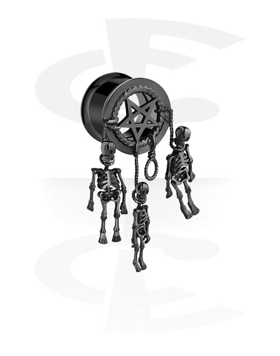 Tunel z odkręcaną ścianką (stal chirurgiczna, czarny, błyszczące wykończenie) z Skeleton Attachment