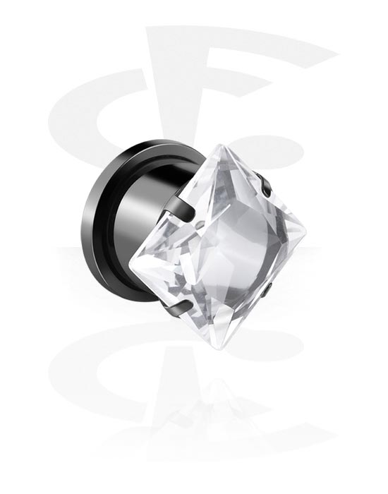 Tunel z odkręcaną ścianką (stal chirurgiczna, czarny, błyszczące wykończenie) z z kryształem