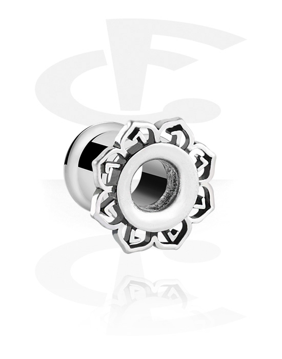 Tunel z dwoma ściankami (stal chirurgiczna, srebro, błyszczące wykończenie) z kwiatem