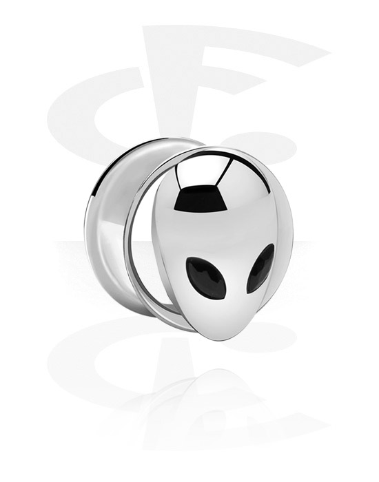 Tunel z dwoma ściankami (stal chirurgiczna, srebro, błyszczące wykończenie) z nakrętką kosmita