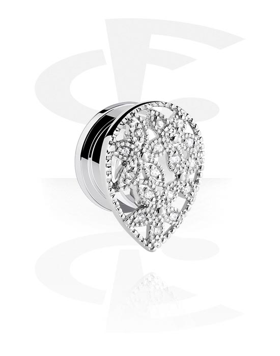 Tunel z odkręcaną ścianką (stal chirurgiczna, srebro, błyszczące wykończenie) z nakrętką w kształcie łezki i kryształami