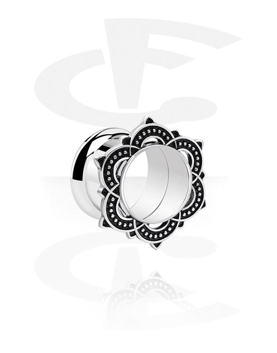 Tunel z dwoma ściankami (stal chirurgiczna, srebro, błyszczące wykończenie) z kwiatowym wzorem vintage