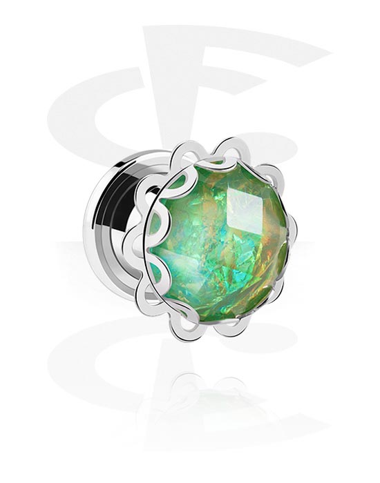 Tunel z odkręcaną ścianką (stal chirurgiczna, srebro, błyszczące wykończenie) z z kryształem