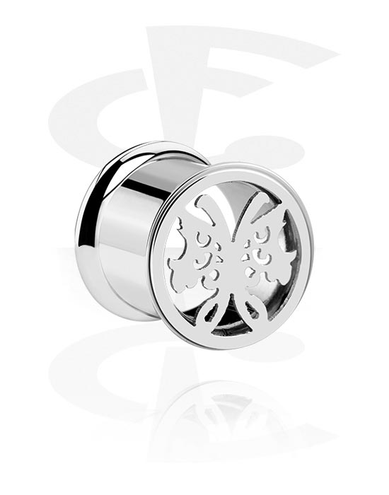 Tunel z dwoma ściankami (stal chirurgiczna, srebro, błyszczące wykończenie) z wzorem motyla