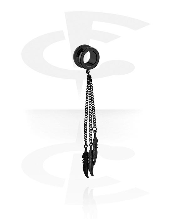 Tunel z odkręcaną ścianką (stal, czarny, błyszczące wykończenie) z z łańcuszkiem i charmsem piórem