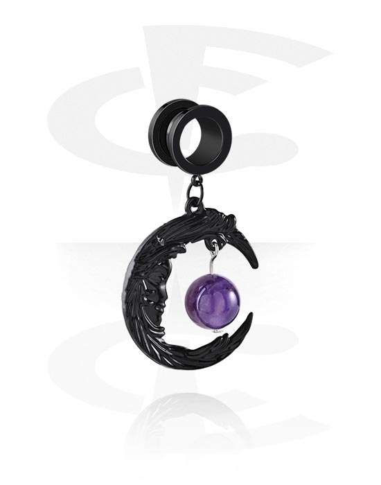 Tunel z odkręcaną ścianką (stal chirurgiczna, czarny, błyszczące wykończenie) z półksiężycem