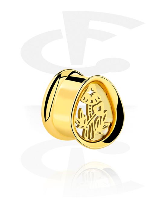Plug z dwoma ściankami w kształcie łezki (stal, złoto, błyszczące wykończenie) z ozdobą