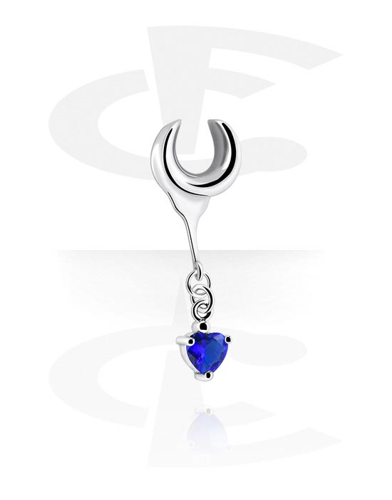 Półtunel (stal chirurgiczna, srebro, błyszczące wykończenie) z z charmsem sercem i z kryształem