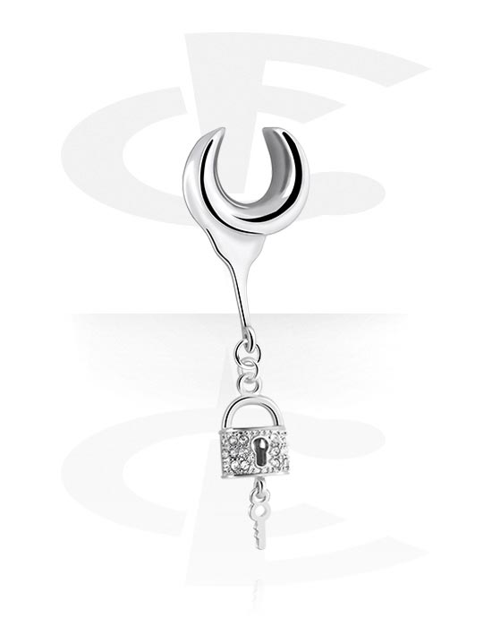 Półtunel (stal, srebro, błyszczące wykończenie) z charmsem kłódką i kryształami