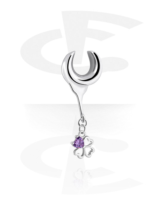 Półtunel (stal, srebro, błyszczące wykończenie) z charmsem koniczynką i z kryształem