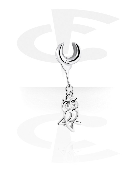 Półtunel (stal chirurgiczna, srebro, błyszczące wykończenie) z charmsem sową i kryształami