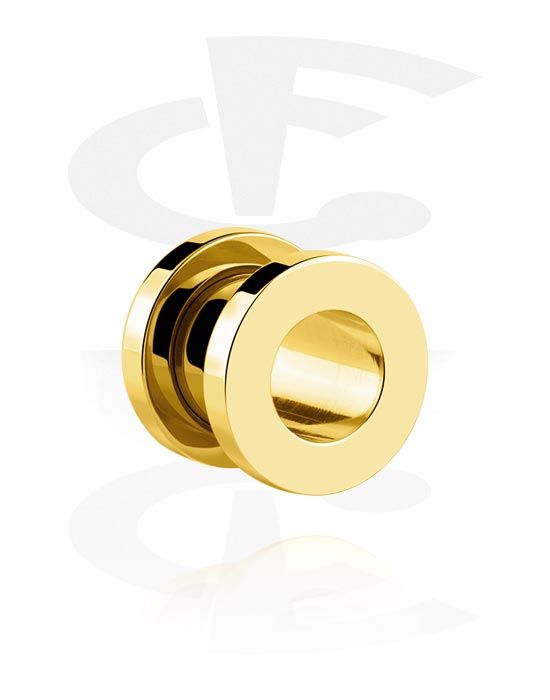 Gold-plated flesh tunnel with threaded back. Pretty posh!