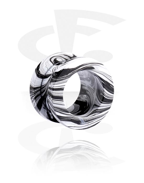 Black and white flesh tunnel with threaded back for easy insertion. Available in different sizes.