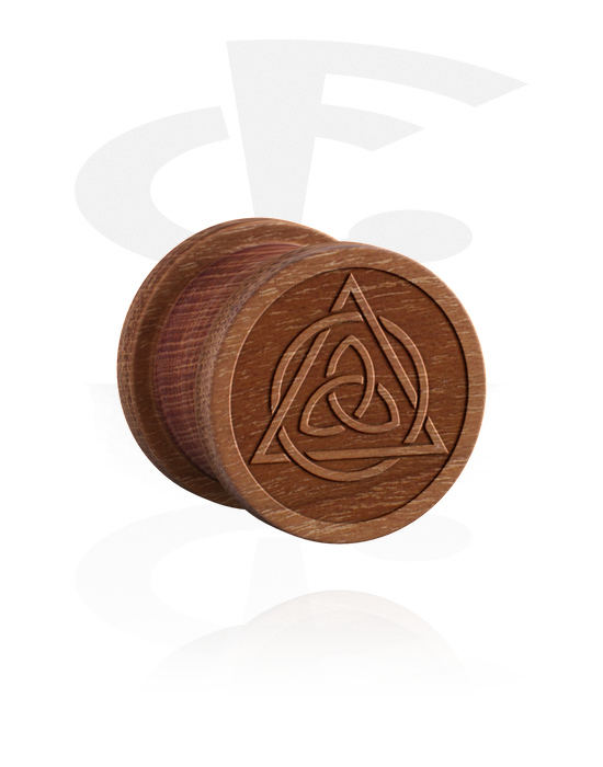 Ribbed plug made of wood, featuring a handcrafted triquetra laser engraving. With products made of organic materials, size, shape and colour may vary slightly in each piece.