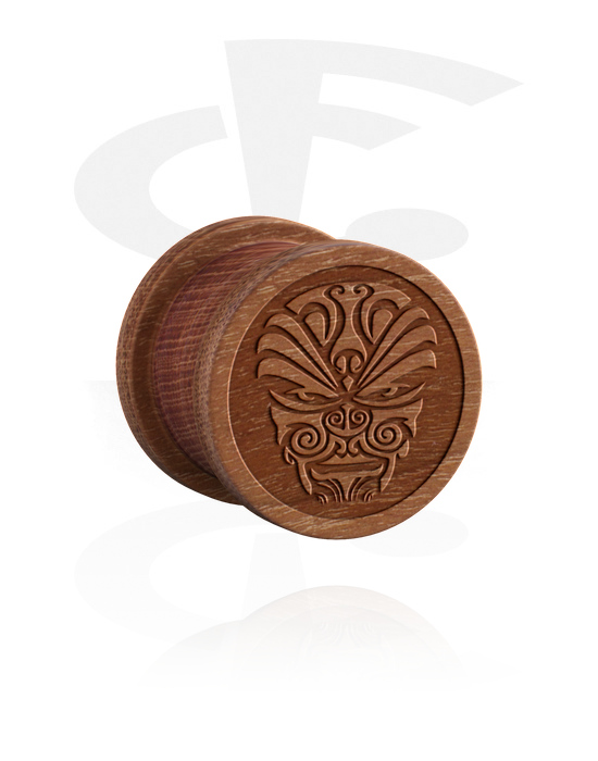Love natural materials? Check out this stylish ribbed plug made of wood with a tribal mask laser engraving. Size, shape and colour may vary slightly in each piece.