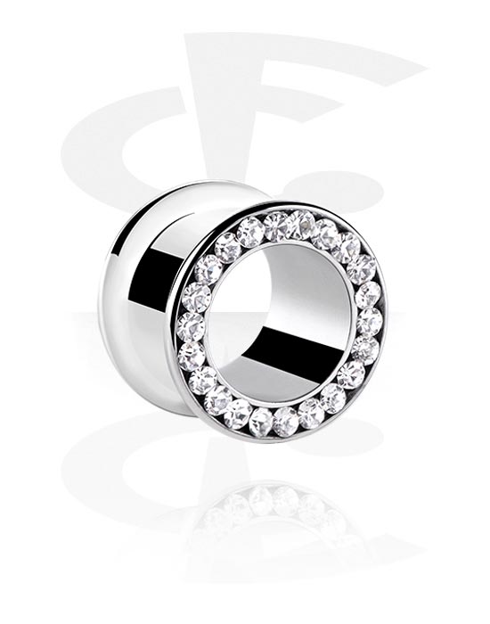 Tunel z dwoma ściankami (stal chirurgiczna, srebro, błyszczące wykończenie) z kryształami