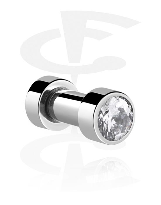 Tunel z odkręcaną ścianką (stal chirurgiczna, srebro, błyszczące wykończenie) z z kryształem