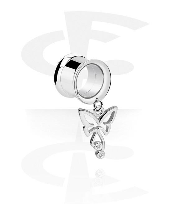 Tunel z dwoma ściankami (stal chirurgiczna, srebro, błyszczące wykończenie) z charmsem motylem