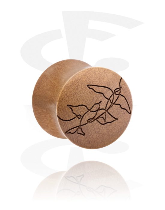 Plug z dwoma ściankami (drewno) z grawerem laserowym „ptaki rysowane jedną linią”